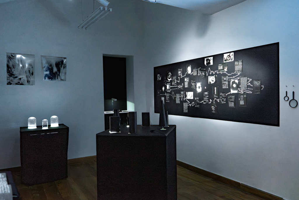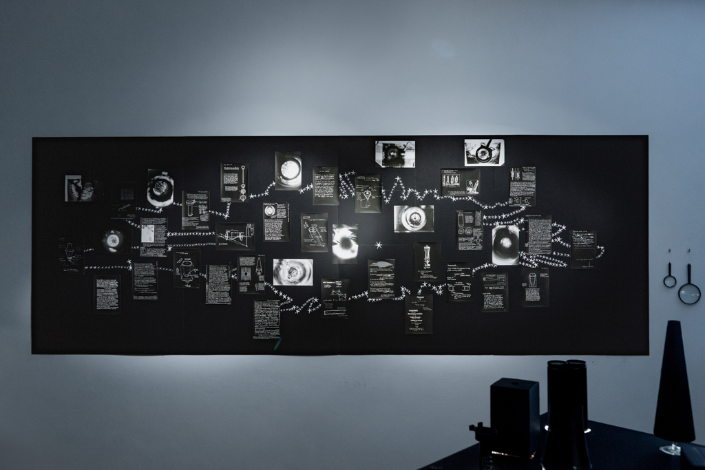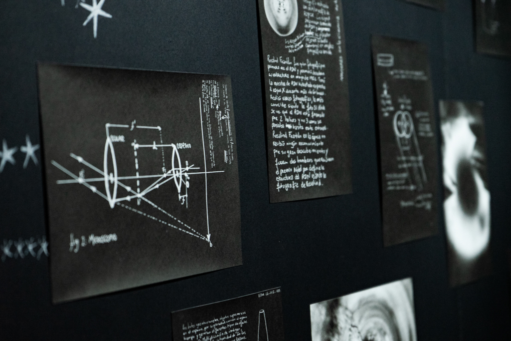 En este encuentro, las artistas presentan la intersección de ambas exploraciones e inventan un personaje ficticio que, a través de una serie de artefactos diseñados para observar, nos invita a seguir una investigación que se desplaza del cosmos al tejido cerebral, como si la mente, hecha materia, pudiera contenerlo todo.
